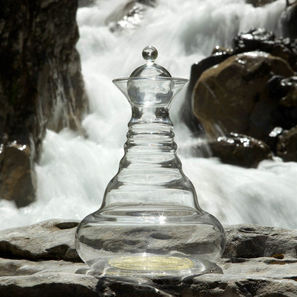 Alladin Karaf, diğer su sürahilerinden farklı olarak birçok özelliği sayesinde suyu yapılandırıp canlandırmaktadır. Modern ve şık tasarımı ile her mekanda öne çıkar. Tasarımı Fibonacci dizilimi gözetilerek, doğanın geometrisi olan Altın Oran prensiplerine dayanarak hizalanmış̧ ve şekillendirilmiştir. Tabanın beyaz renkli Yaşam Çiçeği tasarımı kazınarak işlenmiştir. Karaf Avrupa’da el işçiliği ile kurşunsuz olarak üretilmektedir.