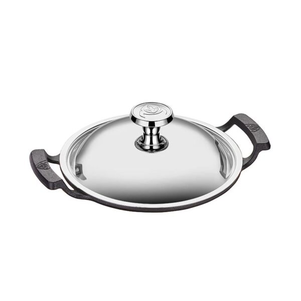 · Yuvarlak, Saç Kavurma · Döküm Demir Gövde, Kulplu · Düz Taban · 304 Paslanmaz Çelik Kapak · Siyah Non-Stick 2 Kat Altınbaşak Demir Kavurma Sacı · Ölçüler: 20 cm · Kalınlık: 3,2 mm · Kapasite: 0,45 lt · Ağırlık: 1,66 kg