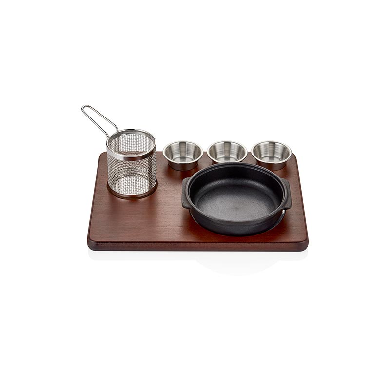 · Ø16cm. Yuvarlak, Güveç. · 3,50mm Döküm Demir Gövde. · Çemberli Düz Taban. · Cilalı MDF Nihale. · 3 Adet Sos Kabı & Mini Fritöz Sepeti. Altınbaşak Demir Güveç Sunum Seti · Ölçüler: 16 cm · Kalınlık: 3 mm · Ağırlık: 2,10 kg