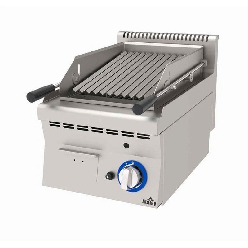 Atalay 600 Seri Lavataşlı Izgara, paslanmaz çelik gövdesi, lavataşlı pişirme yüzeyi ve ergonomik tasarımıyla profesyonel mutfaklar için ideal bir çözümdür. Döküm lavataşlar, yağ damlamasını önlerken eşit ısı dağılımı sağlar. LPG veya doğal gaz (NG) seçenekleriyle kullanılabilir.