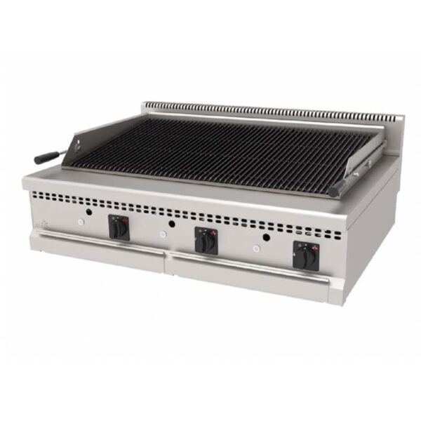 · Paslanmaz çelikten imal edilmiştir. · Paslanmaz sac konstrüksiyonu ile uzun ömürlü kolay temizlenebilir ve hijyeniktir. · Kullanıcıya her yönden rahatlık sağlayan ergonomik dizayna sahiptir. · Emniyet ventilli, pilot ateşlidir. · Tabandaki havuz sayesinde nemlendirme özelliğine sahiptir. · LPG ve NG seçenekleri mevcuttur. · Söküp takılabilen brülörler. · Cihazda pilotlu ve termokupullu kontrol sistemi bulunmaktadır. · Alev söndüğünde cihaza gelen gaz otomatik olarak kesilir. · Yağ kabı alt bölümde bulunmaktadır. · Izgaraların üstü eğik dökümlüdür. · Pişirici yüzey 2 kademe hareketlidir. · Kullanılan seyyar çakmak sayesinde çakmak ısıdan zarar görmez. · ALI – 890 S modellerinde birbirinden bağımsız pişirici hızını yüksek veya düşük alev olarak ayarlanabilen iki adet gaz musluğu vardır. Atalay Lavataşlı Döküm Izgara; · Stok Kodu: ALI – 1290 S · Gaz Sarfiyatı- LPG: 2.481 kg / h · Gaz Sarfiyatı- NG: 3.75 m3 / h · kW – LPG: 31.5 · kW – NG: 33 · Kilokalori – LPG: 27085 · Kilokalori – NG: 28375 · Net Ölçüler: 1200x900x300 Mm · Net Ağırlık: 164 kg