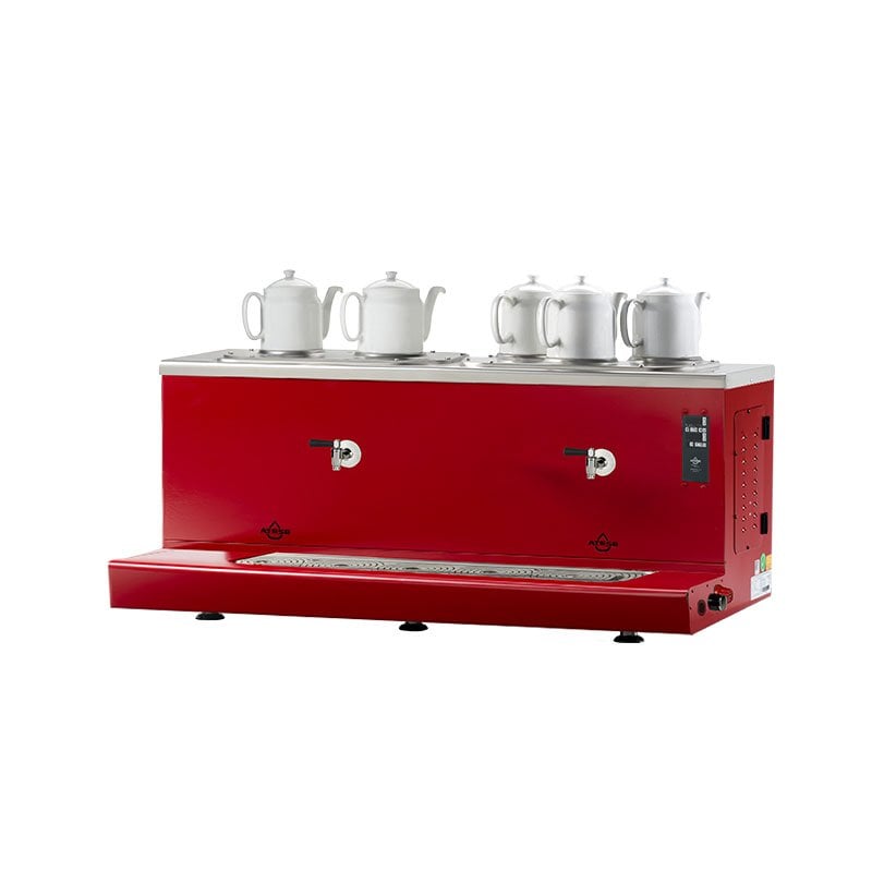 Ateşe Cappadocia Smart Plus Elektrikli 5 Demlikli Çay Kazanı, 30+30 L Kırmızı
