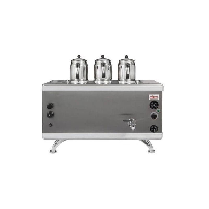 Ateşe Gold Compact Otomatik Gazlı Elektrikli İnox 3 Demlikli Çay Kazanı, 34 Litre