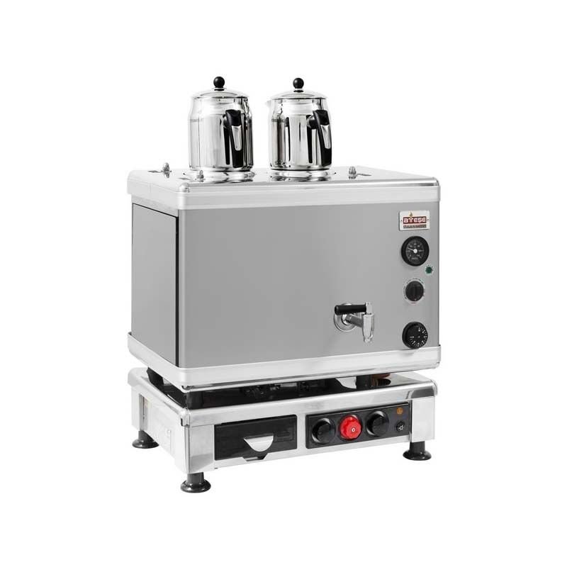 Ateşe Gold Otomatik Gazlı Elektrikli İnox 2 Demlikli Çay Kazanı, 24 Litre