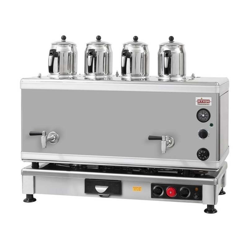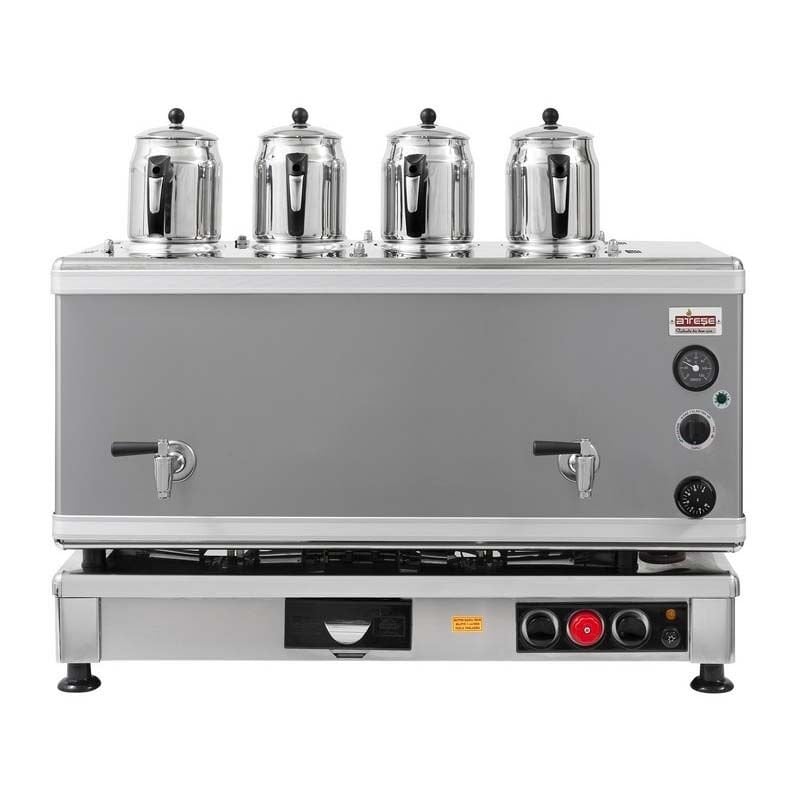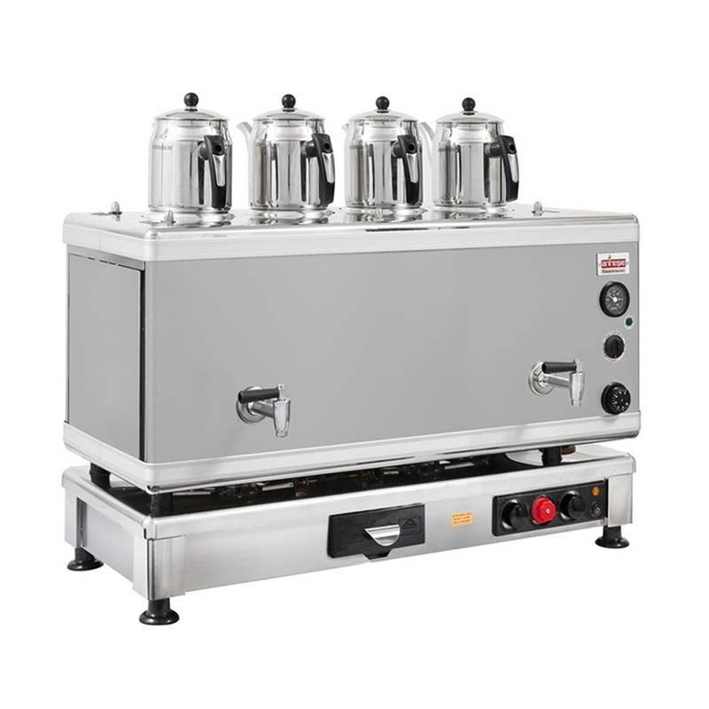 Model: Ateşe Gold Otomatik Gazlı Elektrikli İnox 4 Demlikli Çay Kazanı, 45 Litre