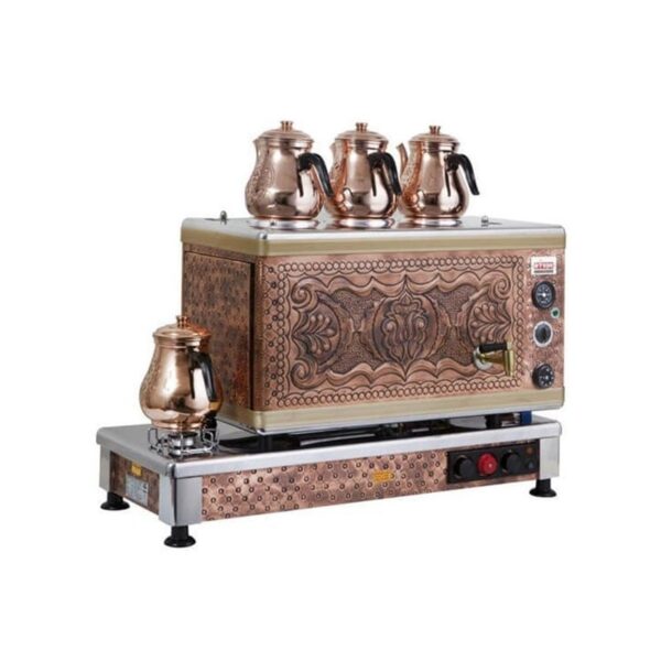 Ateşe Silver Otomatik Gazlı Elektrikli Bakır 3 Demlikli Çay Kazanı, 34 Litre