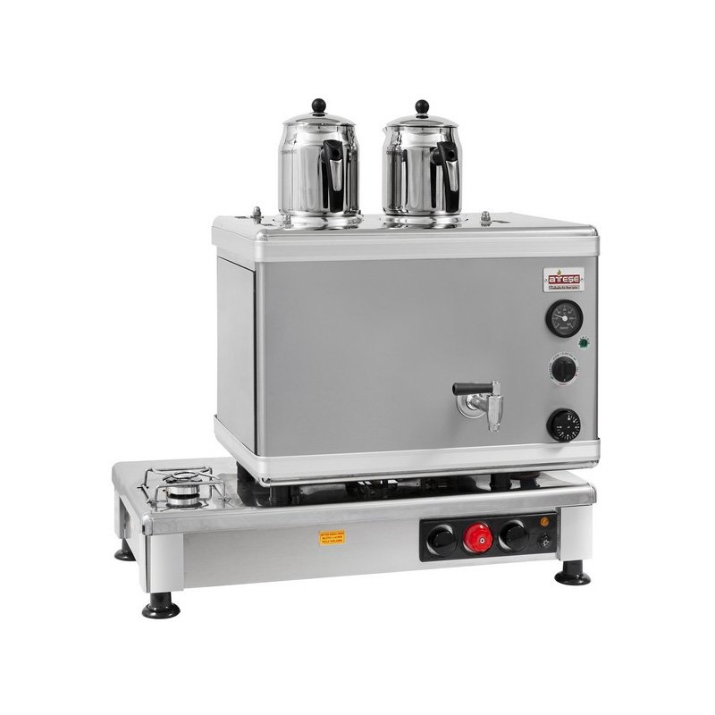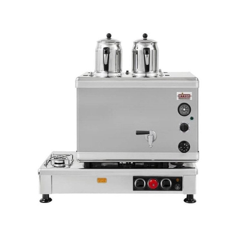 Ateşe Silver Otomatik Gazlı Elektrikli İnox 2 Demlikli Çay Kazanı, 24 Litre |