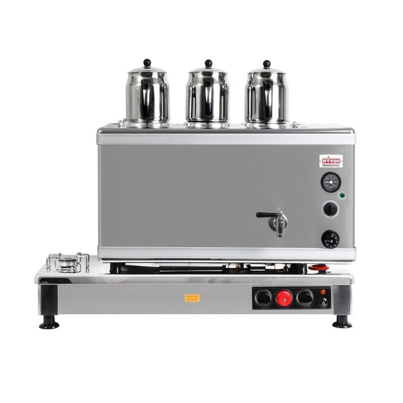Ateşe Silver Otomatik Gazlı Elektrikli İnox 3 Demlikli Çay Kazanı, 34 Litre |