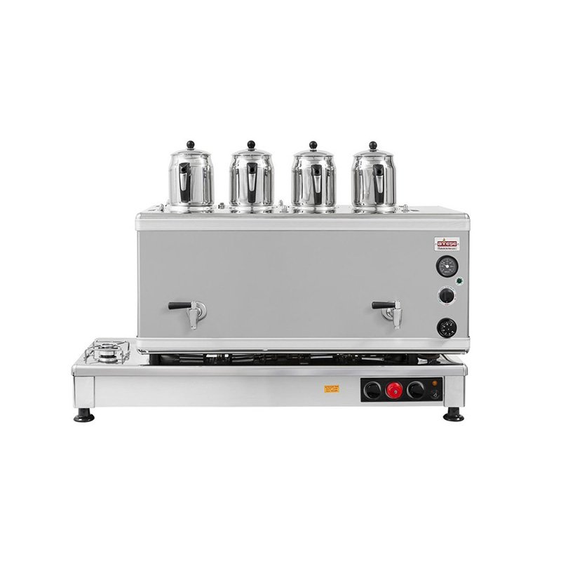 Ateşe Silver Otomatik Gazlı Elektrikli İnox 4 Demlikli Çay Kazanı, 45 Litre