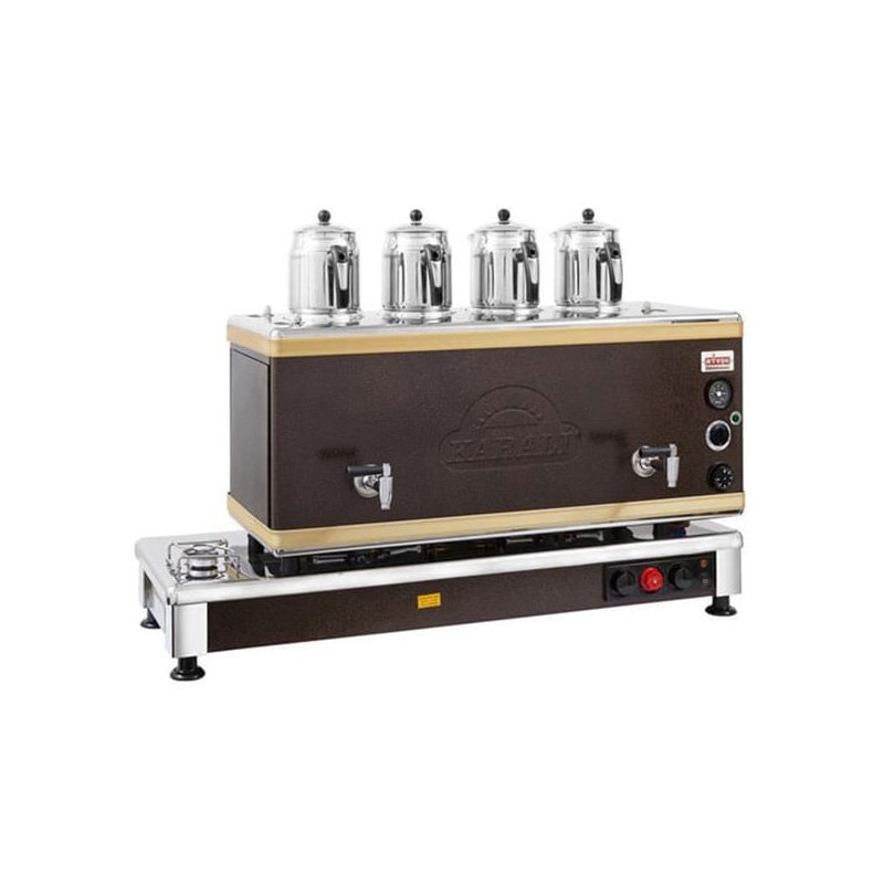Ateşe Silver Otomatik Gazlı Elektrikli Statik 4 Demlikli Çay Kazanı, 45 Litre