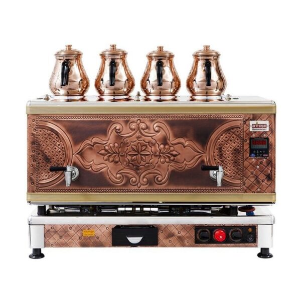 Model: Ateşe Titanium Akıllı Dijital Gazlı Elektrikli Bakır 4 Demlikli Çay Kazanı, 45 Litre