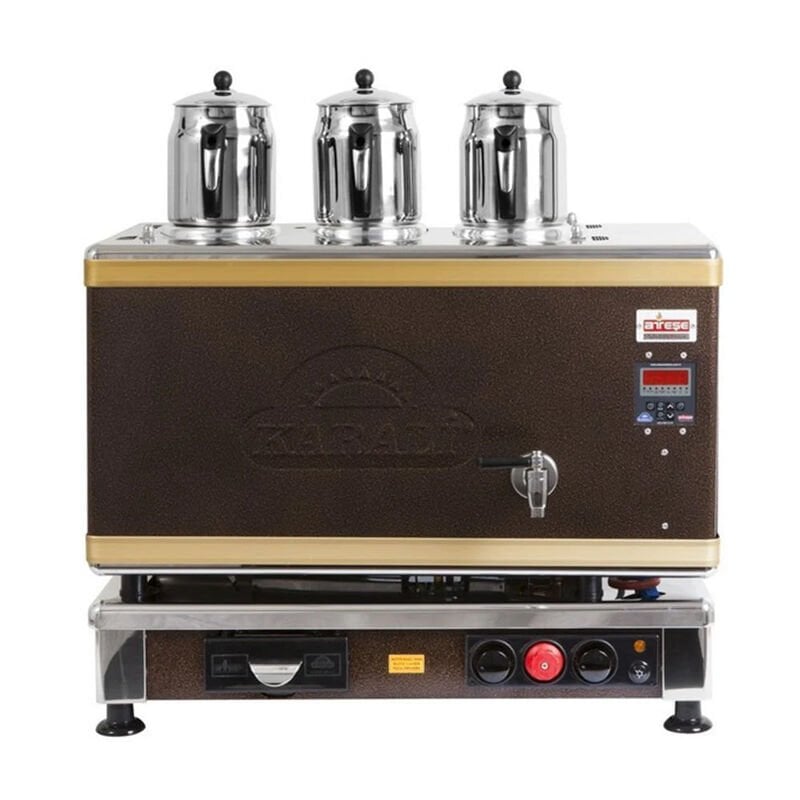 Ateşe Titanium Akıllı Dijital Gazlı Elektrikli Statik 3 Demlikli Çay Kazanı, 34 Litre