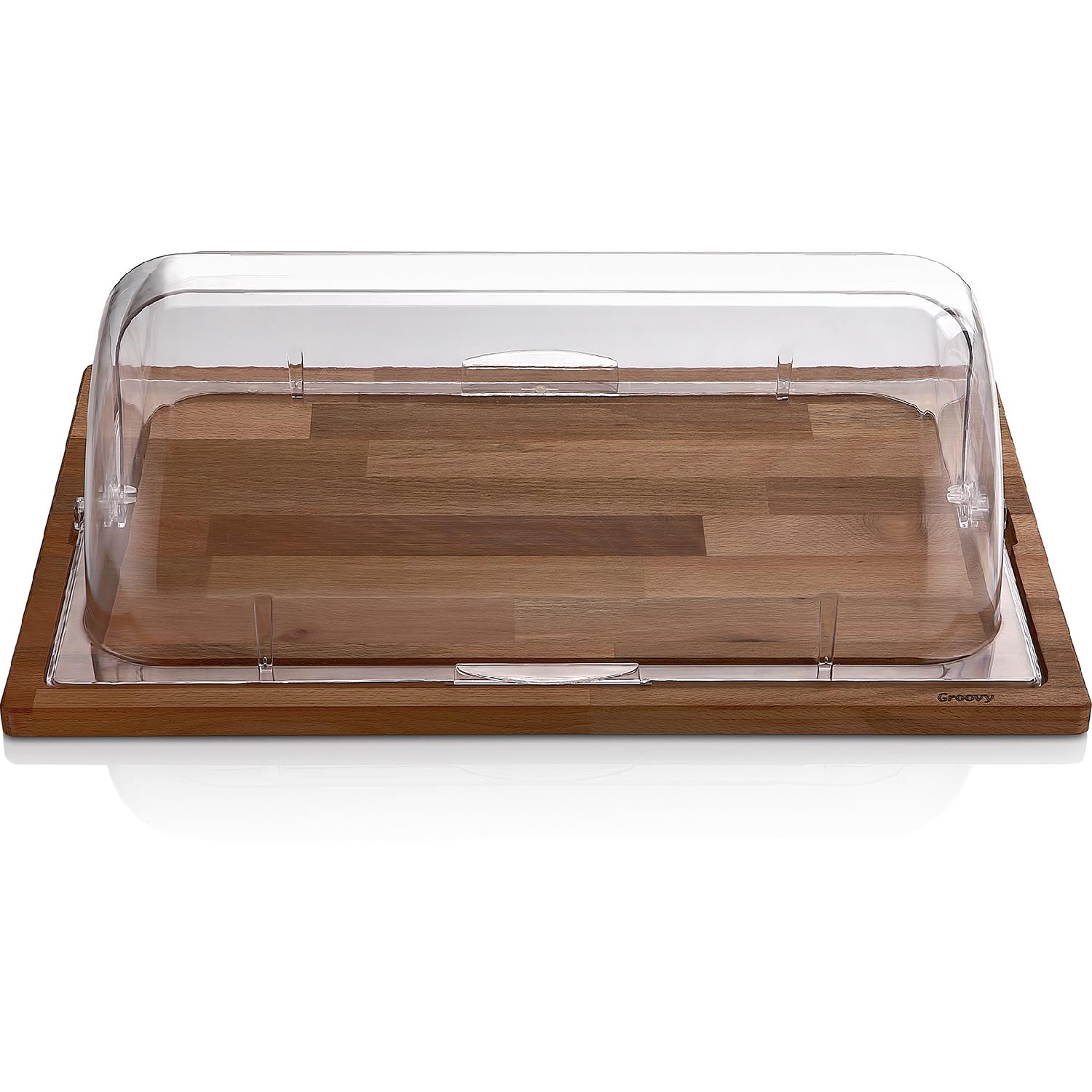 Biradlı Groovy Ahşap Altlı Polycarbonat Rolltop Kapaklı Fanus