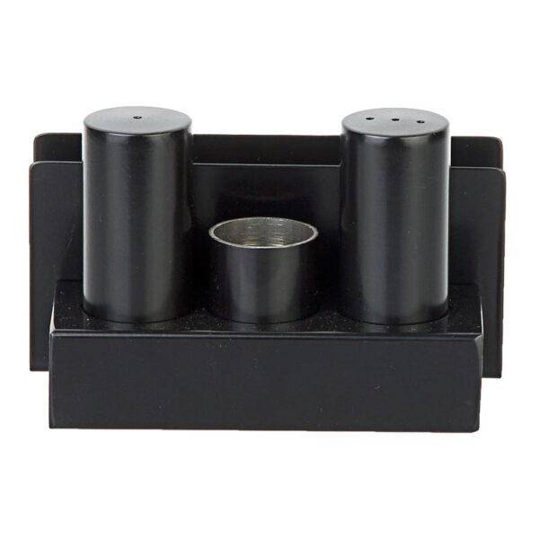 Biradlı Groovy GRV-103-P Peçetelikli Yuvarlak Çelik Tuzluk Takımı, Siyah