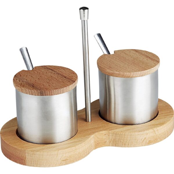 2 Adet metal baharatlık ve ahşap standından oluşmaktadır.