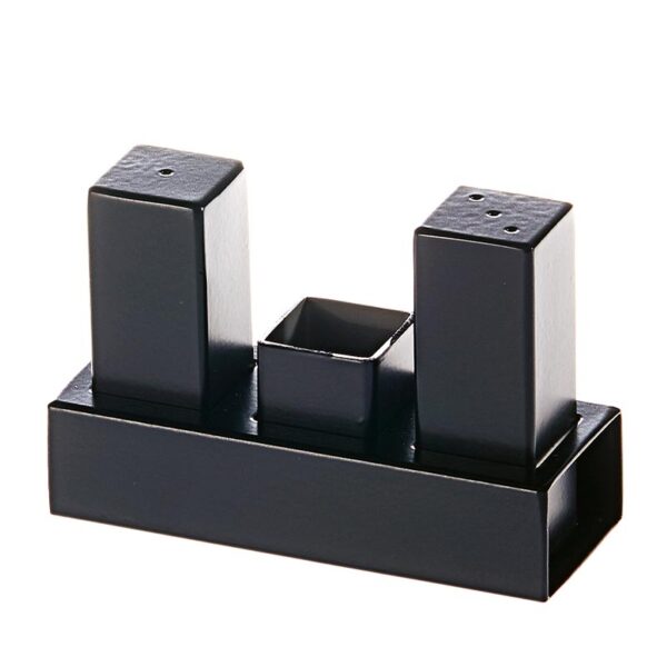 Biradlı Groovy Kare Tuzluk Takımı, 3’lü, Siyah