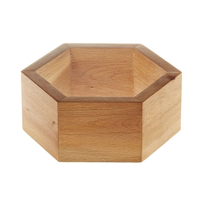 Biradlı Groovy Ahşap Altıgen Şekerlik, 15×10 cm