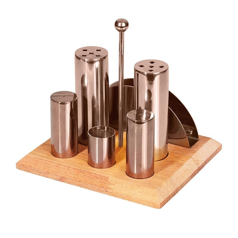 Biradlı Tuzluk ve Baharatlık Takımı, Yuvarlak, 6’lı, Bakır