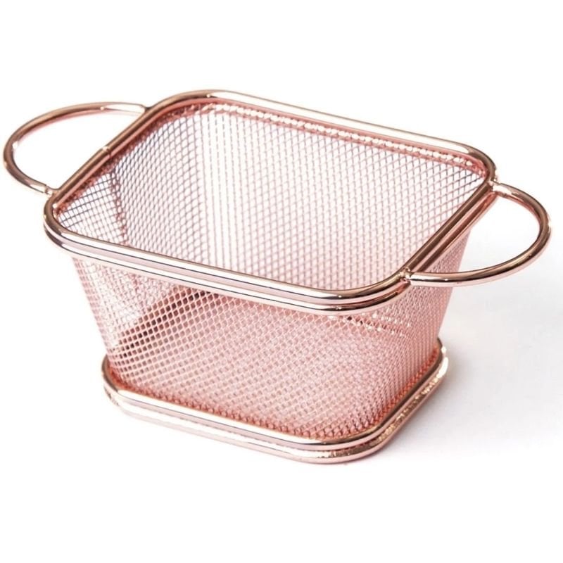 Biradlı ST-05 Çift Kulplu Dikdörtgen Patates Sunum Sepeti, Bakır