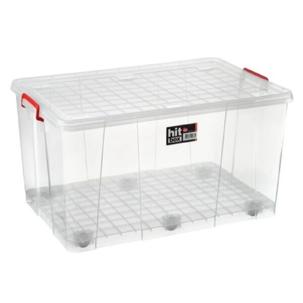 Bora Plastik Kapaklı Tekerlekli Saklama Kabı 120 Litre Şeffaf