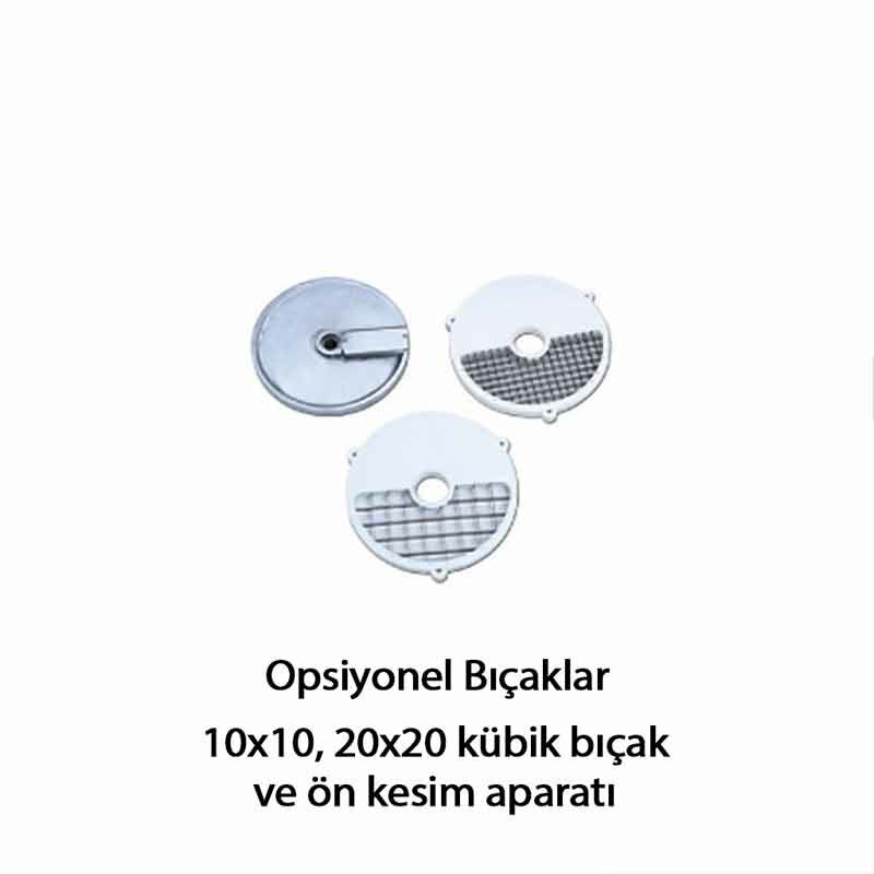 Makineyle birlikte 2 adet rende, 4 adet dilimleme bıçağı ve 1 adet patates bıçağı yer alır. Böylece farklı sebzeler için ideal kesim formunu kolayca elde edebilir, menünüzdeki tüm hazırlık süreçlerini hızlandırabilirsiniz.