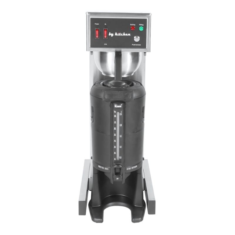 · S/S'li Amerikan tarzı kahve makinesi · Filtre sepeti (Basmalı Anahtar, Otomatik Doldurma) · 1x Kahve 2.5 L Vakum yalıtımlı Kova · Açma/Kapama düğmesi, üst katmanda otomatik uyarı fonksiyonu · Demleme Süresi: 6-7 dakika · Kuru çalışma koruması · 304 paslanmaz çelik By Kitchen Filtre Kahve Makinesi · Ebatlar(mm): 308x455x705 · Güç: 1900 W – 220/230V · Hacim: 2.5 L