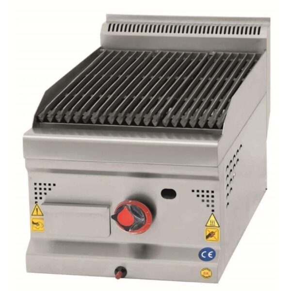 · Lpg ve Ng ile çalışabilme özelliği. · Magnet emniyet ventilli ve pilotlu musluklar. · Tam modüllerde iki bölgeli ısıtma. · Her brülör için piezzo çakmak ile kontrol. · Çıkarılabilir yağ toplama haznesi. · Kolay temizlenebilir ve hijyeniktir. · Paslanmaz çelik gövde. CSA Lavataşlı Döküm Izgara · Ölçüler: 400x600x300 mm · Enerji: 30 mbar · Güç: 5,577 kW · Kapasite: 2400 cm2 · Ağırlık: 35 kg