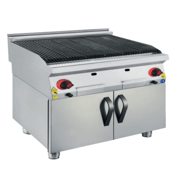 · Buharlaştırma kabini sayesinde daha verimli pişirme. · Lpg ve Ng ile çalışabilme özelliği. · Magnet emniyet ventilli ve pilotlu musluklar. · Tam modüllerde iki bölgeli ısıtma. · Her brulör için piezzo çakmak ile kontrol. · Pik döküm ızgara. · Kolay temizlenebilir ve hijyeniktir. · Paslanmaz çelik gövde. CSA Sulu Döküm Izgara · Ölçüler: 800x900x850 mm · Enerji: 20 mbar · Güç: 17,339 kW · Kapasite: 4000cm2 · Ağırlık: 135 kg