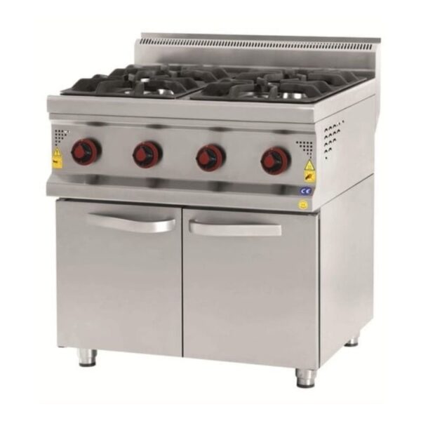 CSA 900 Seri 4 Gözlü Ocak Dolaplı Lpg’li 80×90 Cm · Lpg ve Ng ile çalışabilme özelliği. · Magnet emniyet ventilli musluklar. · Özel emaye kaplı güçlü ızgara. · Kademeli şalter. · Çift yanışlı brulör. · Her brulör için piezzo çakmak ile · kontrol. · Kolay temizlenebilir ve hijyeniktir. · Paslanmaz çelik gövde. CSA Ocak Dolaplı · Ölçüler: 800x900x850 mm · Enerji: 30 mbar · Güç: 30,362 kW · Ağırlık: 110 kg
