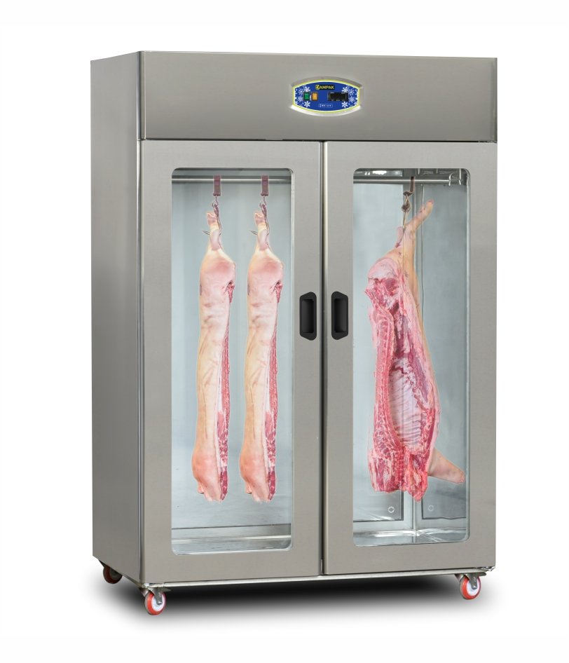 · İç, dış gövde paslanmaz çelik · 60mm kalınlığında 37/45 kg/m³ yoğunlukta çevre dostu · (CFC içermeyen) poliüretan izolasyon. · Dijital kontrollü kumanda paneli · Otomatik defrost özelliği. · Yüksekliği ayarlanabilir paslanmaz ayaklar · Kullanıcı tarafından sökülüp temizlenebilir · manyetik kapı contası · Yaylı menteşe sayesinde kendi kendine kapanabilir kapı. · En23953′ e göre 32°C, Rh%65 ve 41°C Rh%70 · çalışma koşullarına uygun. · R404a soğutucu gaz Dampak Et Askı Buzdolabı Teknik Özellikler · Kapasite: 1342 L · Ölçüler: 139x82x210 Cm · Sıcaklık: -2/+5 °C · Ağırlık: 195 Kg · Güç: 725 W / 220-240 V / 50-60 Hz