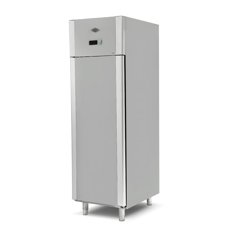 · Çalışma aralığı 0/+5 ºC (tropikal 43 ºC) · 220-230V -1 +N 50-60 Hz elektrik gücü. · “CFC Free” R-290 soğutucu gaz. · 40 kg/m³ yoğunluk. · Sıcaklık ve defrost kontrollü dijital gösterge. · Defrost esnasında otomatik su buharlaştırma. · Fanlı soğutma. · 48 mm kalınlığında “ozon dostu” poliüretan izolasyon. · 45 derecede sabit kendiliğinden kapanan kapılar. · Alüminyum panelli,bakır borulu evaparatör. · Paslanmaz çelik gövde. Empero Dik Tip Pastane Buzdolabı Teknik Özellikleri; · Ebatlar(mm): 700x800x2050 · Ağırlık(kg): 142 · Net(m3): 1.2 · Güç(kw): 0.69 · Kapasite: 700