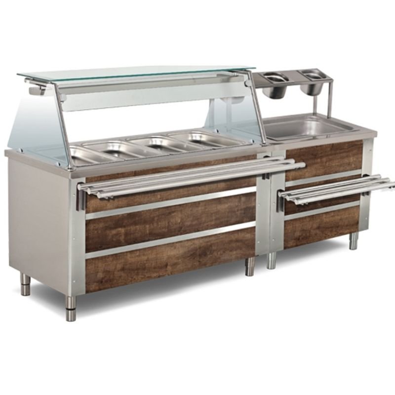 · Termostatik kumanda. · 220V 50 Hz enerji. · Paslanmaz çelik havuz. · Su tahliye vanası. · Aydınlatma Sistemi. · Paslanmaz çelik gövde. Empero Servis Ünitesi Teknik Özellikleri; · Ebatlar(mm): 1500x790x850/1350 · Ağırlık(kg): 99 · Net(m3): 1.5 · Kapasite: 3 Sıcak+1 Nötr