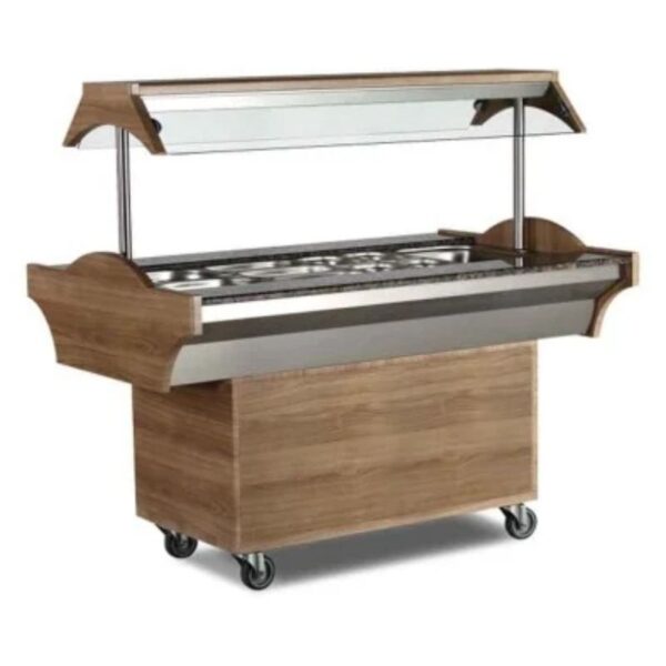 · Termostatik kumanda. · 220V 50 Hz enerji. · Paslanmaz çelik havuz. · Su tahliye vanası. · Aydınlatma Sistemi. · Opsiyonel ahşap gövde. · Çıkartılabilir üst servis rafı. Empero Sıcak Benmari Teknik Özellikleri; · Ebatlar(mm): 2100x890x870/1370 · Ağırlık(kg): 184 · Net(m3): 2.50 · Güç(kw): 3.5 · Kapasite: 6×1/1