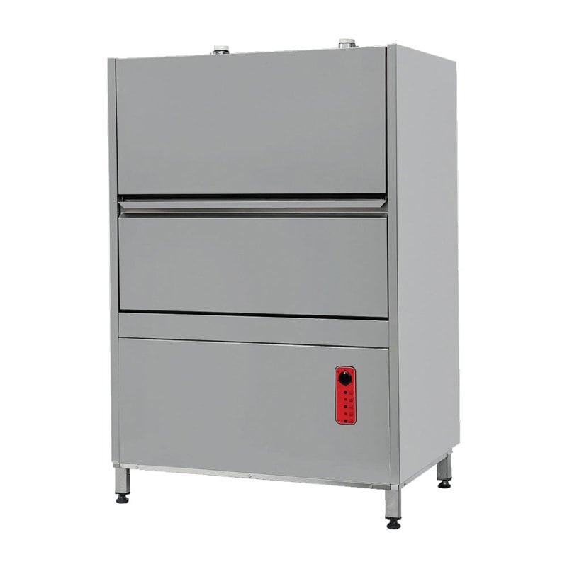 · 120/240/360 saniye olmak üzere 3 farklı program. · Drenaj pompa standart. · Ekonomik su, deterjan ve enerji tüketimi. · Manyetik kapı güvenlik sensörü. · Paslanmaz çelik rezistanslar. · Paslanmaz çelik gövde. · Yıkama suyu sıcaklığı 55-60°C · Durulama suyu sıcaklığı 80-85°C · Tank kapasitesi: 130 lt · Su tüketimi: 7,5 lt · Kapasite: 30 basket/saat · Kapasite: 480 adet 60×80 cm tepsi/saat · Kapasite: 120×1/1 Gn-saat · Motor gücü: 1.5 kW 2800 D/Dk x2 · Yıkama tankı ısıtıcı gücü: 12 kW · Durulama boyler ısıtıcı gücü: 18 kW · Makine toplam gücü: 40 kW/380 V · Kazan iç hazne yıkama yüksekliği 70 cm Empero Kazan Yıkama Makinesi Teknik Özellikleri; · Ebatlar(mm): 1360x930x1985 · Ağırlık(kg): 300 · Net (m3): 2.51 · Kapasite(lt): 130