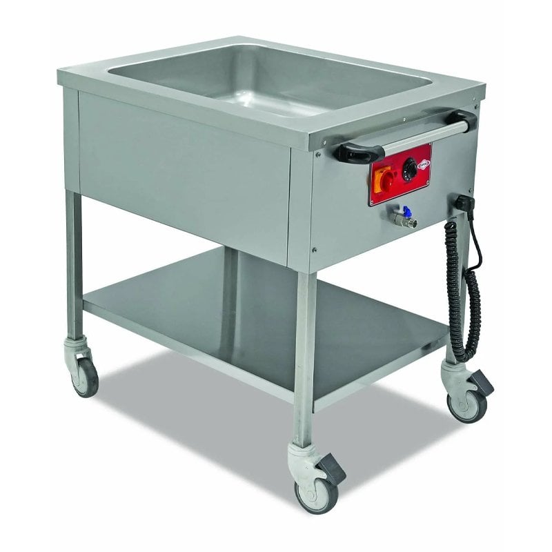 · 220V – 240V · 50-60 Hz elektrik gücü. · Elektrikli termostatik ısı kontrolü. · Kilitlenebilir tekerlekler ile sabitleme özelliği. · Paslanmaz çelik gövde. Empero Mobil Benmari · Ebatlar(mm): 855x705x850 · Ağırlık(kg): 39 · Net(m3): 0.51 · Güç(kw): 3,6 · Kapasite(gn): 2 adet 1/1