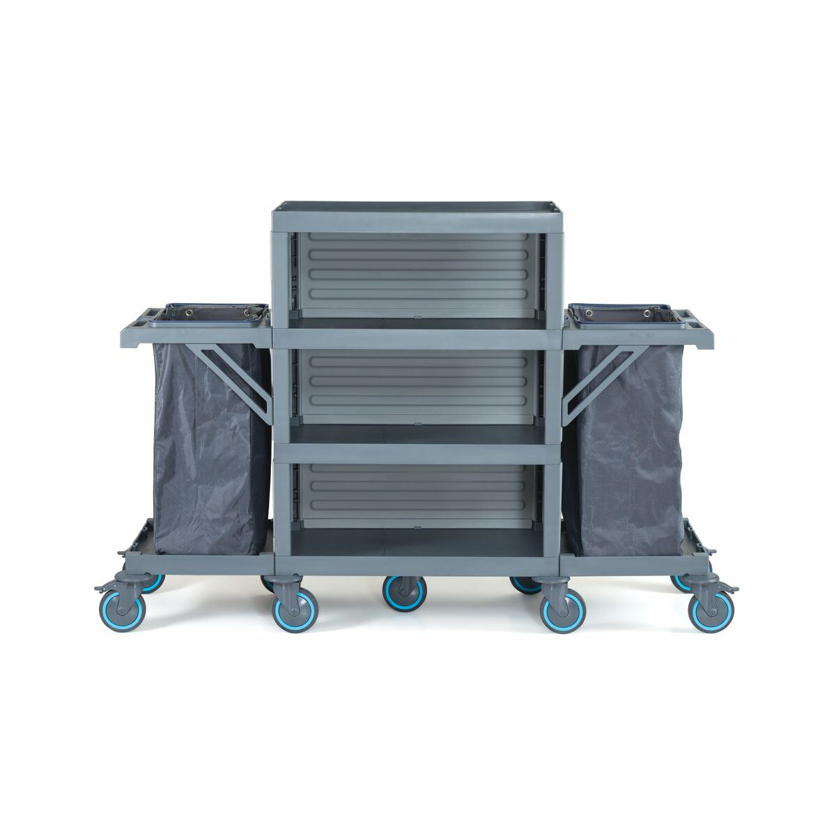 Yazlık, rezidans, okul, fabrika, hastane gibi işletmelerin kat hizmetlerinde kolaylık ve standartlık sunar. Rahatça hareket edebilen sessiz, tamponlu ve frenli tekerlekleri sayesinde darbelere karşı birebirdir. Frenli tekerleri sayesin’de eğik düzlemlerde sabitlemenizi sağlar. Basit özellikleriyle de kolay bir biçimde servis yapma imkanı sunar. Opsiyonel aksesuarı ile 2 x 60 lt olarak kullanmanızı sağlar. Tüm gövde yapısı plastik olduğu için iç ve dış mekanlarda kullanmanızı sağlar, aynı zamanda su ile yapılan temizliklerden hiçbir şekilde etkilenmeyip asla paslanma yapmaz. Hammaddesinde bulunan poli propilen malzemede kullanılmıştır. Ürünün ön bölümü açık, diğer üç bölümünün kapalı olması kolaylık açısından değişiklik arz etmektedir. Ürünün üç katlı dört raflı olması sizlere daha rahat iç yapma ile servis olanağı sağlamaktadır. Aynı zamanda ürün size 3 x 120 lt çamaşır toplama imkanıda sağlamaktadır. Her iki taraftaki itme sapları ve çöp kilitleri sizlere kullanım rahatlığı sağlar. www.mutfak10.com