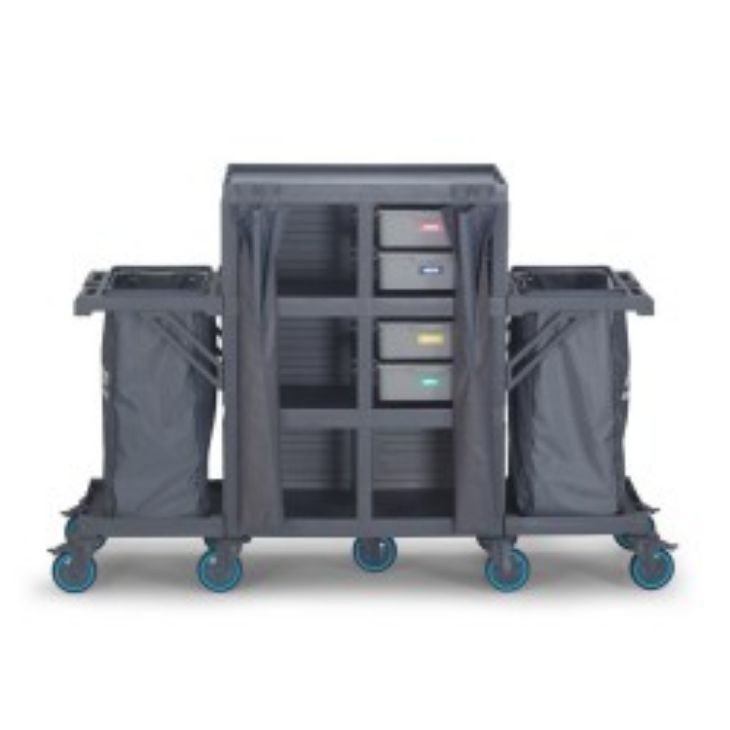Fantom procart 435 çekmeceli brandalı kat arabası, 2 çöp bölmeli rahatça hareket edebilen sessiz tamponlu ve frenli tekerlekleri sayesinde darbelere karşı dayanıklıdır. Frenli tekelleri sayesinde eğik düzlemlerde sabitleme imkanı sağlar. Opsiyonel aksesuarı ile atık bölmenizi 2 x 60 lt olarak kullanma imkanı sunar. Tüm gövde yapısının plastik olması sayesinde, iç ve dış mekanlarda kullanıma uygundur. Su ile yapılan temizliklerden hiçbir şekilde etkilenmez ve paslanma yapmaz. Ürünün hammaddesinde kimyasal maddelere ve ısıya dayanıklı poli propilen malzeme kullanılmıştır. www.mutfak10.com