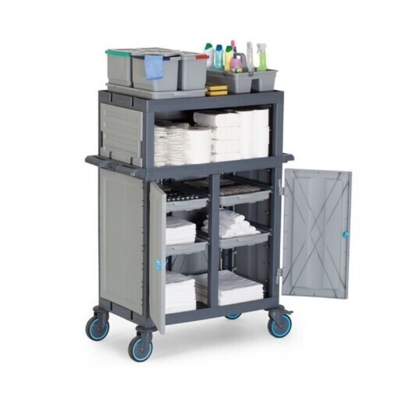 Fantom procart 440 dolaplı kat arabası rahatça hareket edebilen sessiz tamponlu ve frenli tekerlekleri sayesinde darbelere karşı dayanıklıdır. Frenli tekelleri sayesinde eğik düzlemlerde sabitleme imkanı sağlar. Opsiyonel aksesuarı ile atık bölmenizi 2 x 60 lt olarak kullanma imkanı sunar. Tüm gövde yapısının plastik olması sayesinde, iç ve dış mekanlarda kullanıma uygundur. Su ile yapılan temizliklerden hiçbir şekilde etkilenmez ve paslanma yapmaz. Ürünün hammaddesinde kimyasal maddelere ve ısıya dayanıklı poli propilen malzeme kullanılmıştır. www.mutfak10.com
