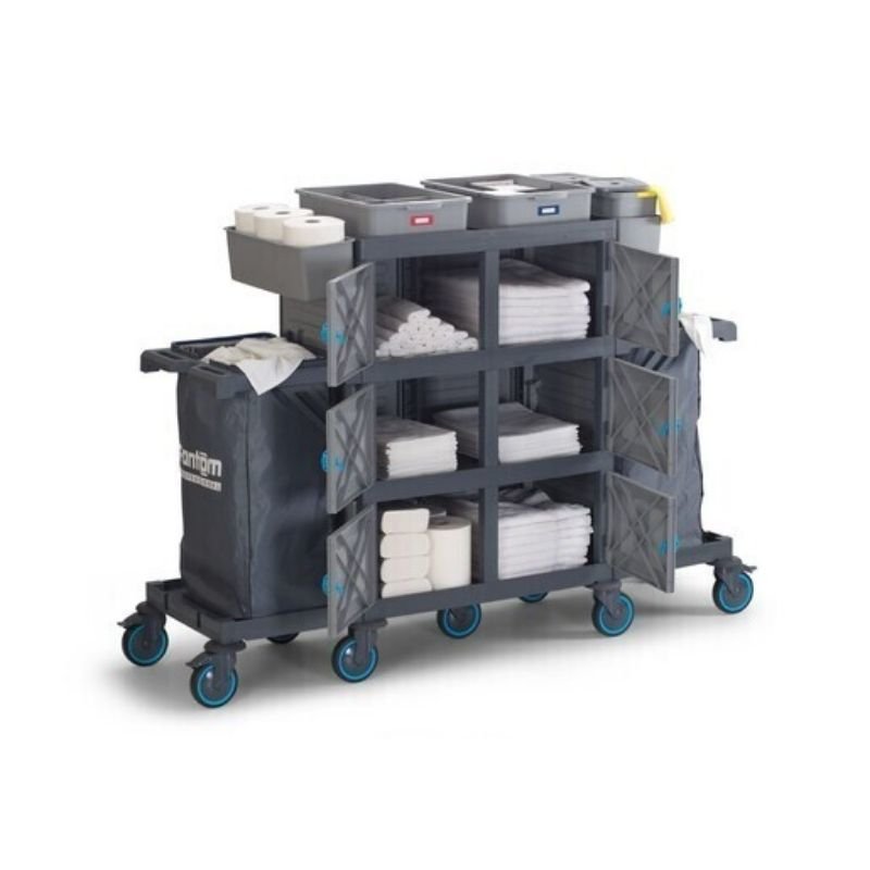 Fantom procart 452 çekmeceli ayrılabilir kat arabası, çöp bölmeli.Rahatça hareket edebilen sessiz tamponlu ve frenli tekerlekleri sayesinde darbelere karşı dayanıklıdır. Frenli tekelleri sayesinde eğik düzlemlerde sabitleme imkanı sağlar. Opsiyonel aksesuarı ile atık bölmenizi 2 x 60 lt olarak kullanma imkanı sunar. Tüm gövde yapısının plastik olması sayesinde, iç ve dış mekanlarda kullanıma uygundur. Su ile yapılan temizliklerden hiçbir şekilde etkilenmez ve paslanma yapmaz. Ürünün hammaddesinde kimyasal maddelere ve ısıya dayanıklı Poli Propilen malzeme kullanılmıştır. www.mutfak10.com