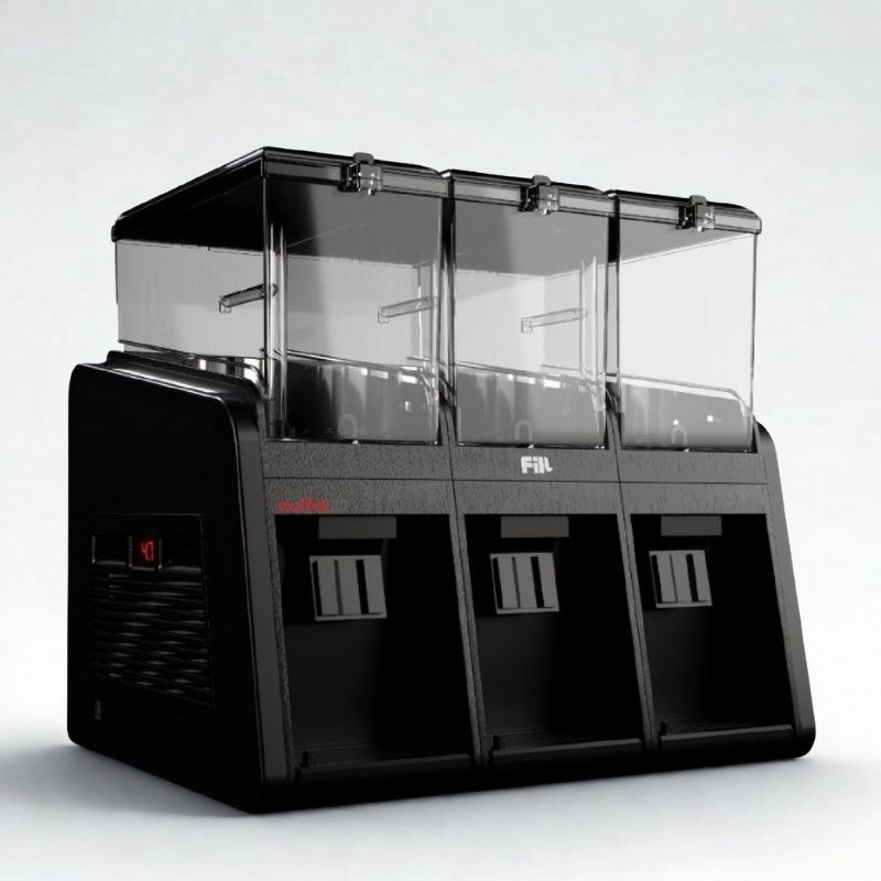 - · Fill Classic, 19 litrelik hazneleriyle tekli, ikili, üçlü ve dörtlü modellerde sunulur; böylece farklı servis ihtiyaçlarına kolayca uyum sağlar. Kafelerden otellere, restoranlardan self-servis alanlara kadar yoğun kullanıma uygun olarak tasarlanmıştır. Özel geliştirilmiş soğutucu yapısı, içecekleri uzun süre ideal sıcaklıkta tutarken düşük enerji tüketimiyle işletmelere verimlilik kazandırır.