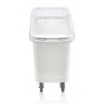 · Gıda temasına uygun PP poliproplen hammaddeden üretilmiştir. BPA içermez. · Beyaz renkte üretilip, kapağı şeffaftır. · 62 lt kapasiteye sahiptir. · içinde polikarbonat erzak küreğiyle birlikte gelir · Kullanım esnasında gıdada koku ve tat değişikliğine yol açmaz. · 2 adet sabit ve yönlendirmeyi sağlayan 2 adet hareketli tekerleğiyle rahat ve portatif bir kullanım sağlar. · Endüstriyel bulaşık makinelerinde yıkanabilir. · -40/+70 derece sıcaklıklara dayanıklıdır. · Geri dönüşümlüdür Kullanım Talimatları · TC Gıda Tarım ve Hayvancılık bakanlığı TR-34-K 186769 kayıt nolu gıda ile temas eden ürünler yönetmeliğine göre üretilmiştir. · Ağır temizlik kimyasalları ile temizlenmemesi önerilir.. · Endüstriyel bulaşık makinelerinde yıkanabilir. · -40/+70 derece sıcaklıklara dayanıklıdır. · Izgara ve ateş üstünde ürünün içinde yemek ısıtmayınız. · Ürünün yüzeyini çizebilecek bıçak ve diğer kesici ile temas ettirmeyiniz. · Elle yıkamalarda ürünü çizebilecek sert ovucular kullanmayınız. · Yumuşak sünger ve bulaşık deterjanları kullanınız. Gastroplast Erzak Arabası · Kod: GIB-03 · Ürün En / Çap: 350 mm · Ürün Boy: 724 mm · Ürün Yükseklik: 565 mm