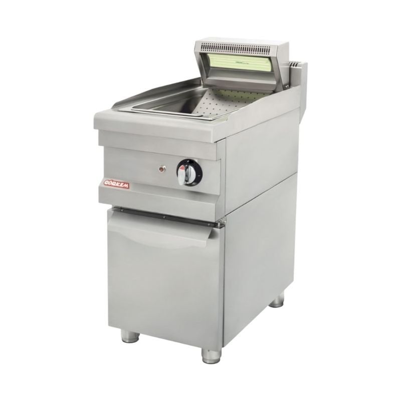 · Paslanmaz çelik gövde · Pilot lamba. Termostat kontrollü (50°C – 200°C) · 4 ufak makarna basketi · Su boşaltma musluğu · CE Belgeli. Görkem Dolaplı Patates Dinlendirme Makinesi; · Güç(Kw): 1 · Enerji: 220V-50Hz · Enerji Türü: Elektrikli · Ölçüler(Cm): 40x61x85