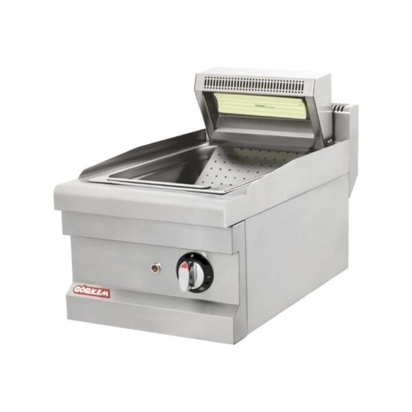 · Paslanmaz çelik gövde · Pilot lamba. Termostat kontrollü (50°C – 200°C) · 4 ufak makarna basketi · Su boşaltma musluğu · CE Belgeli. Görkem Set Üstü Patates Dinlendirme Makinesi; · Güç(Kw): 1 · Enerji: 220V-50Hz · Enerji Türü: Elektrikli · Ağırlık(Kg): 13 · Ölçüler(Cm): 40x61x42