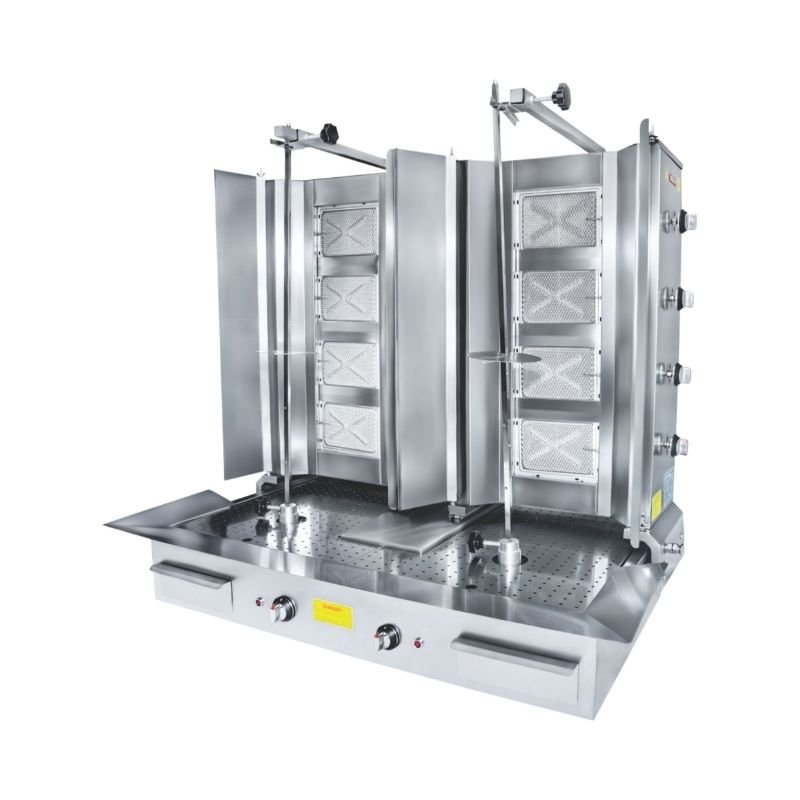 · Lpg olarak kullanım yapacaksanız sipariş adımında lpg olarak belirtiniz. · Paslanmaz çelik gövde · LPG veya Doğalgaza uyumlu · Emniyet ventili valf · Alev paneli · Kolay temizlenebilir · Radyanlar max-min olarak bağımsız çalışır · Yağ toplama tepsisi,boşaltma çekmecesi · CE Belgeli .Görkem Döner Makinesi · Enerji Türü: Gazlı · Güç: 26,9 kW · Enerji: 20mbar · Ölçü cm: 110x71x110