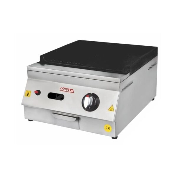 · Paslanmaz çelik gövde · Paslanmaz çelik gömme rezistans · Pilot lamba.Termostat kontrollü (50°C – 300°C) · Güvenlik termostatı. · Yağ haznesi. · CE Belgeli. Görkem Set Üstü ızgara · Enerji: G20 – 20 mbar · Enerji Türü: Gazlı · Güç(kw): 6,6 · Ölçüler(cm): 70x58x30 Cm