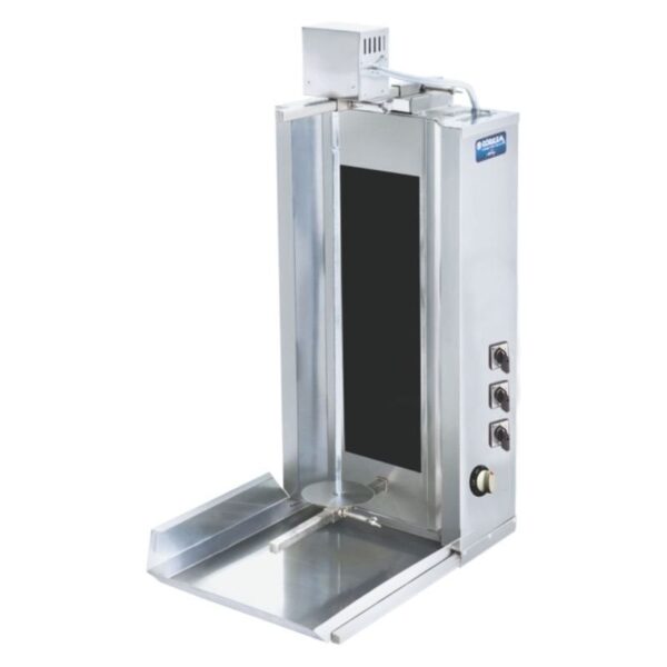 · Paslanmaz çelik gövde · Kolay temizlenebilir · Radyanlar max-min olarak bağımsız çalışır elektrikli · Yağ toplama tepsisi, boşaltma çekmecesi · CE Belgeli. Görkem Döner Makinesi · Enerji Türü: Elektrik · Güç: 4,8 kW · Enerji: 380V-50Hz · Ölçü cm: 56x66x77