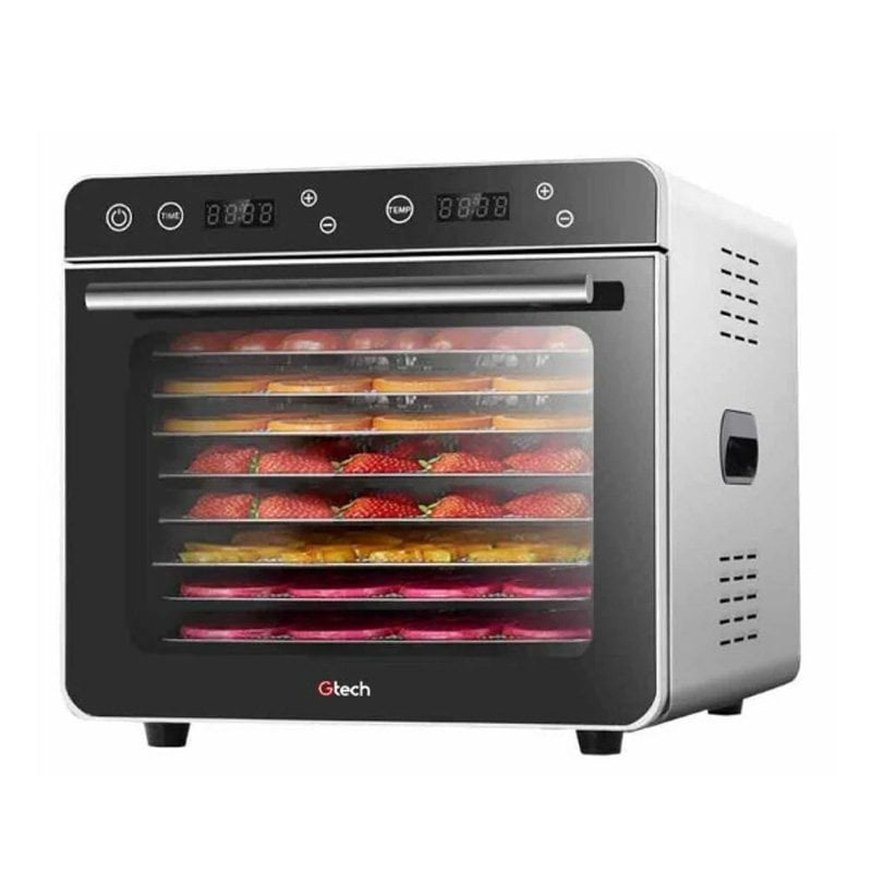 Gtech 8 Tepsili Meyve Ve Sebze Kurutma Makinesi, SS-08C · Çift katmanlı yapıya sahiptir. · Dijital kontrol paneli sayesinde ergonomik kullanım imkanı. · Dahili LED aydınlatmalı cihaz. · Ek 1 adet kırıntı tepsisi ile sevke edilir. · AISI 304 kalite paslanmaz çelik tepsiler ve raflar. · Alüminyum Kulp. Gtech Meyve Ve Sebze Kurutma Makinesi Teknik Özellikler