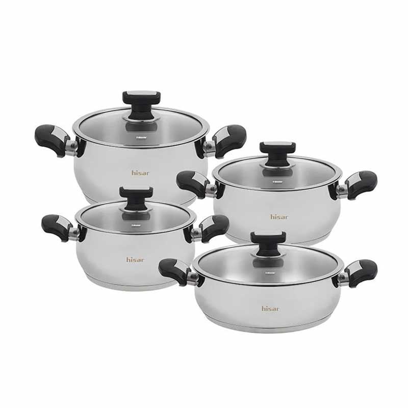 Hisar Atlantis 8 Parça Çelik Tencere Seti Siyah