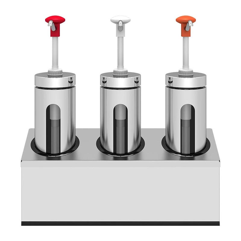 Kalando KD-006 Basmalı Sos Pompası Cam Silindir Hazneli Üçlü Stant 3×2.25 L