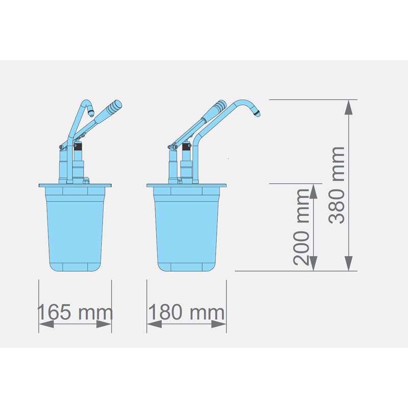 Gastronorm kaplarla uyumlu Kollu Dispenserler, servisinizi daha kolay ve düzenli hale getirecek. · Kol kontrollü servis · GN Gastonorm kapları ile uyumlu · Set 1 / Set2 / Set 3 Tutucularla birlikte sunulur Kalando Sos Pompası Teknik Özellikler